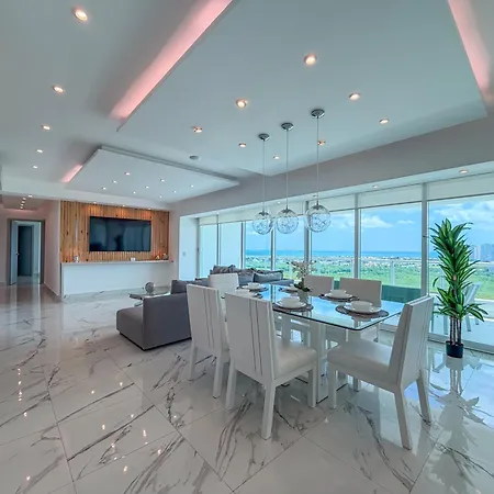 Este apartamento de 155 m², Departamento Vista al mar y Puerto Cancún, está situado a tan solo 1 km de la Iglesia de Cristo Rey, y a unos 25 minutos a pie del Mercado 28. El apartamento dispone de una terraza y vistas al jardín. Se encuentra en el barrio Centro de Cancún de Cancún.